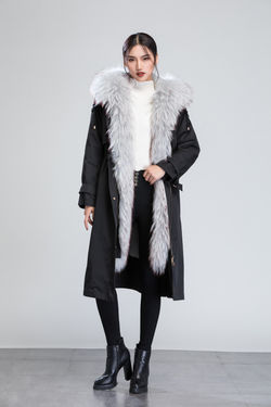 1913 Fur Parka Fur Collar and Along the Front Rabbit Fur Lining Removable Hood Trim Removable Outer Shell