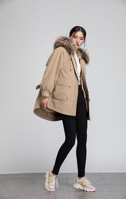 1901 Fur Parka Fur Collar Rabbit Fur Lining Removable Hood Trim Removable Outer Shell